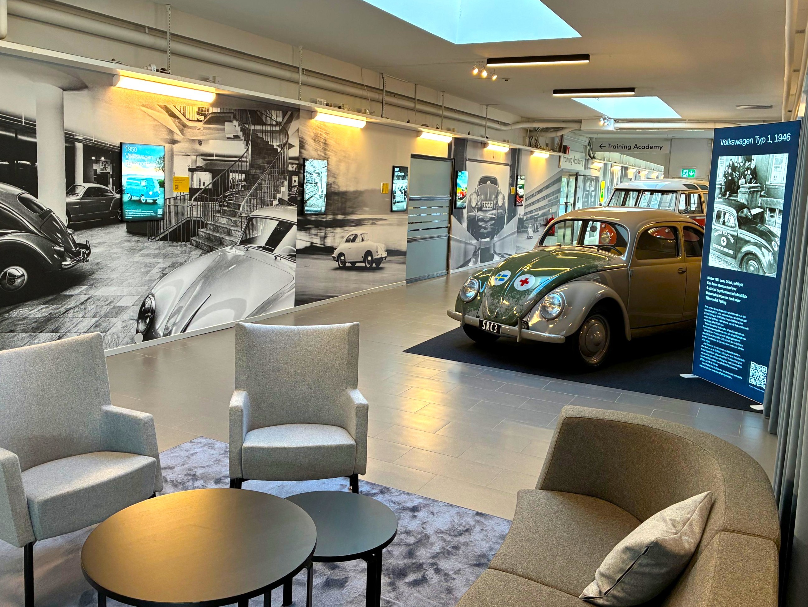 I Volkswagen Group Sveriges ägo finns ett antal gamla modeller från företagets början. För att ge mer utrymme åt historien beslutade företaget att, med dessa bilar som grund, skapa en utställning på huvudkontoret i Södertälje. Och nu står den klar. Efter genomsökningar i gamla arkiv har ett unikt bildmaterial hittats som nu täcker stora väggytor i en av huvudkontorets delar.