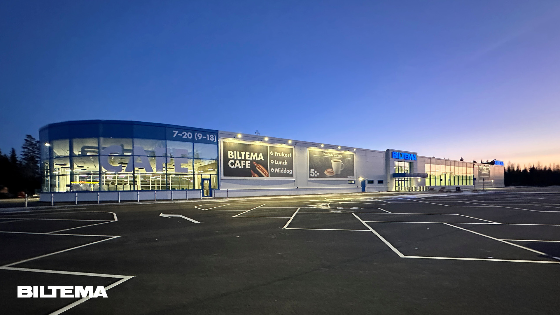 Varuhuset är uppfört enligt Biltemas senaste koncept, med fokus på en ljus och effektiv butiksmiljö och ett Biltema Café.