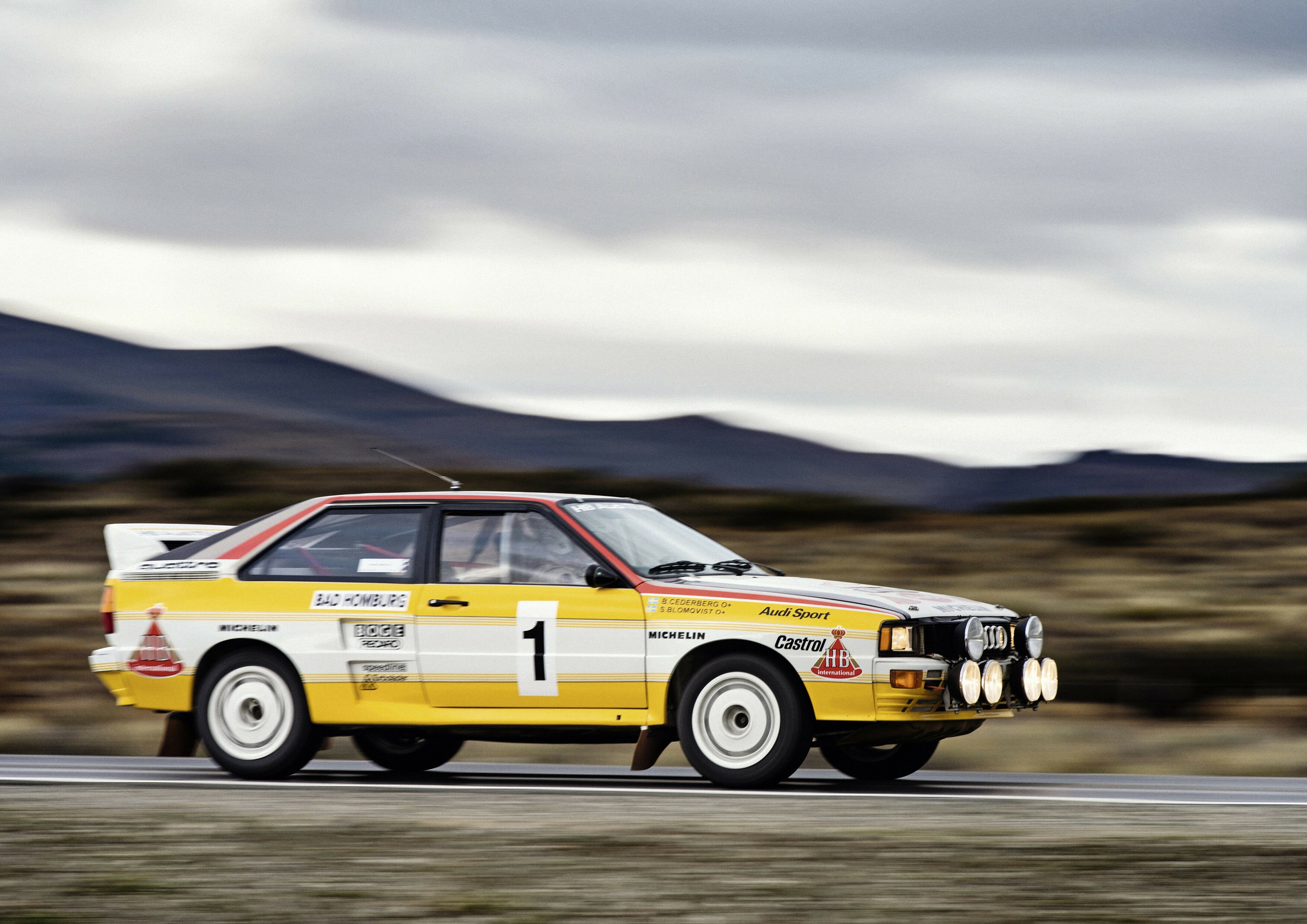 Audi Quattro A2, Group B, modelår 1983. År 1984 tog Stig Blomqvist tog hem världsmästartiteln med en Audi Quattro. Foto: Audi.