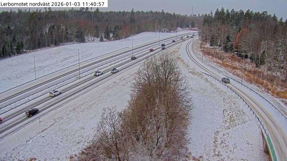 Snöiga vägar på en av landets trafikameror. Foto: Trafikverket.