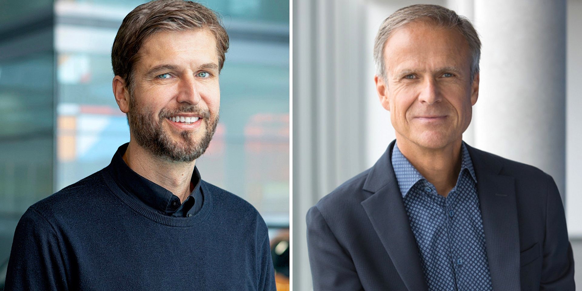 Porsche genomgår ett generationsskifte när 43-årige Tobias Sühlmann (till vänster) tar över som designchef efter Michael Mauer, 63 år. Foto: Porsche AG.