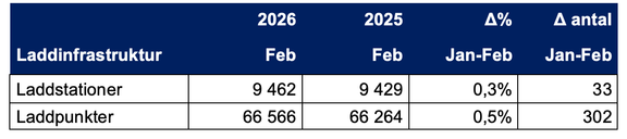 Laddinfrastrukturstatistik februari 2026
